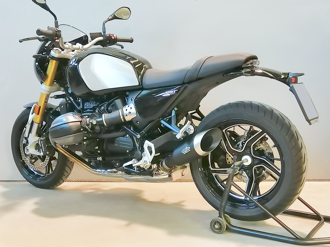 The G&G Bike muffler for the BMW R12 NineT - R12 Bobber is the entry level version for bikers who want to personalize their own bike's look keeping on the original header replacing only the end can.