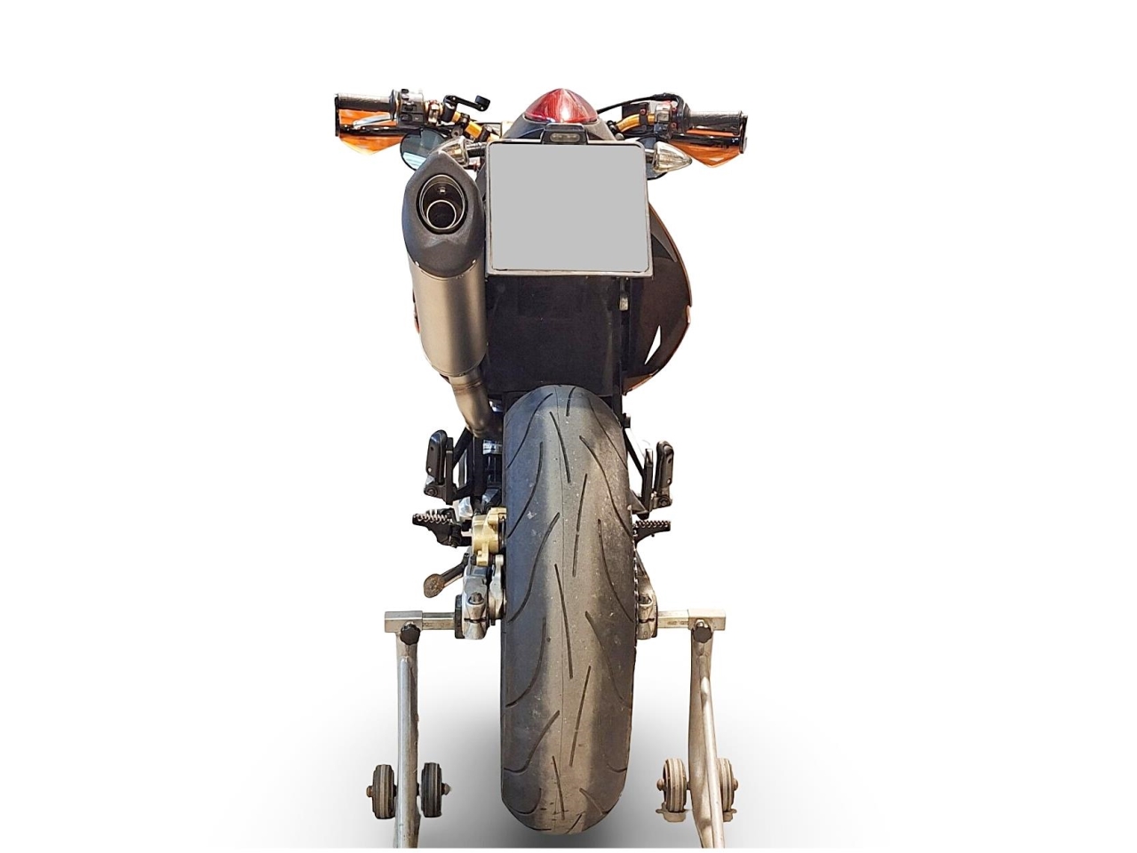 Customized Muffler.Muffler with endcap in composite.The system in images is an example and represents the personal choice of the bike owner, it can be changed in shape, size and accessories according to customer's preferences.