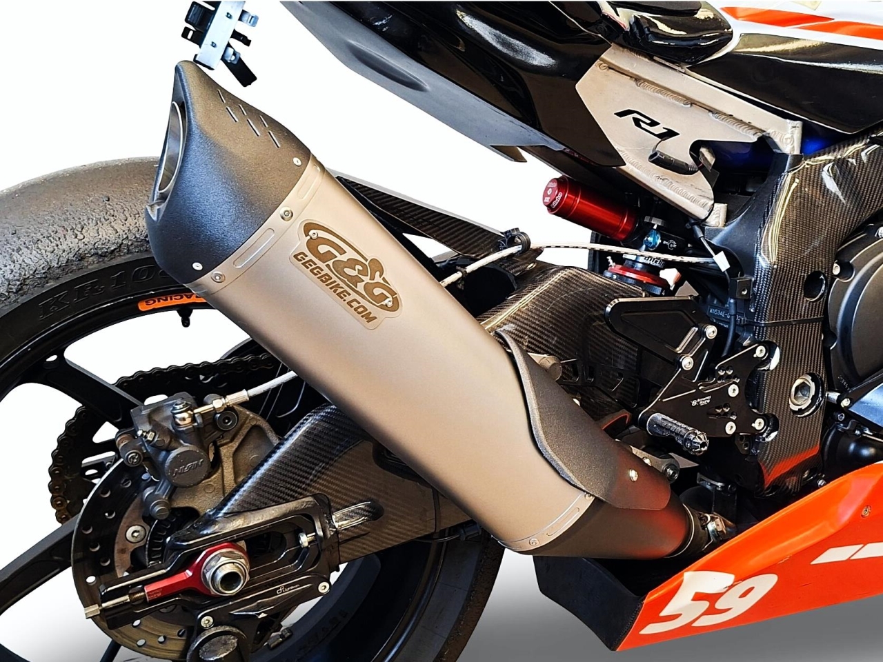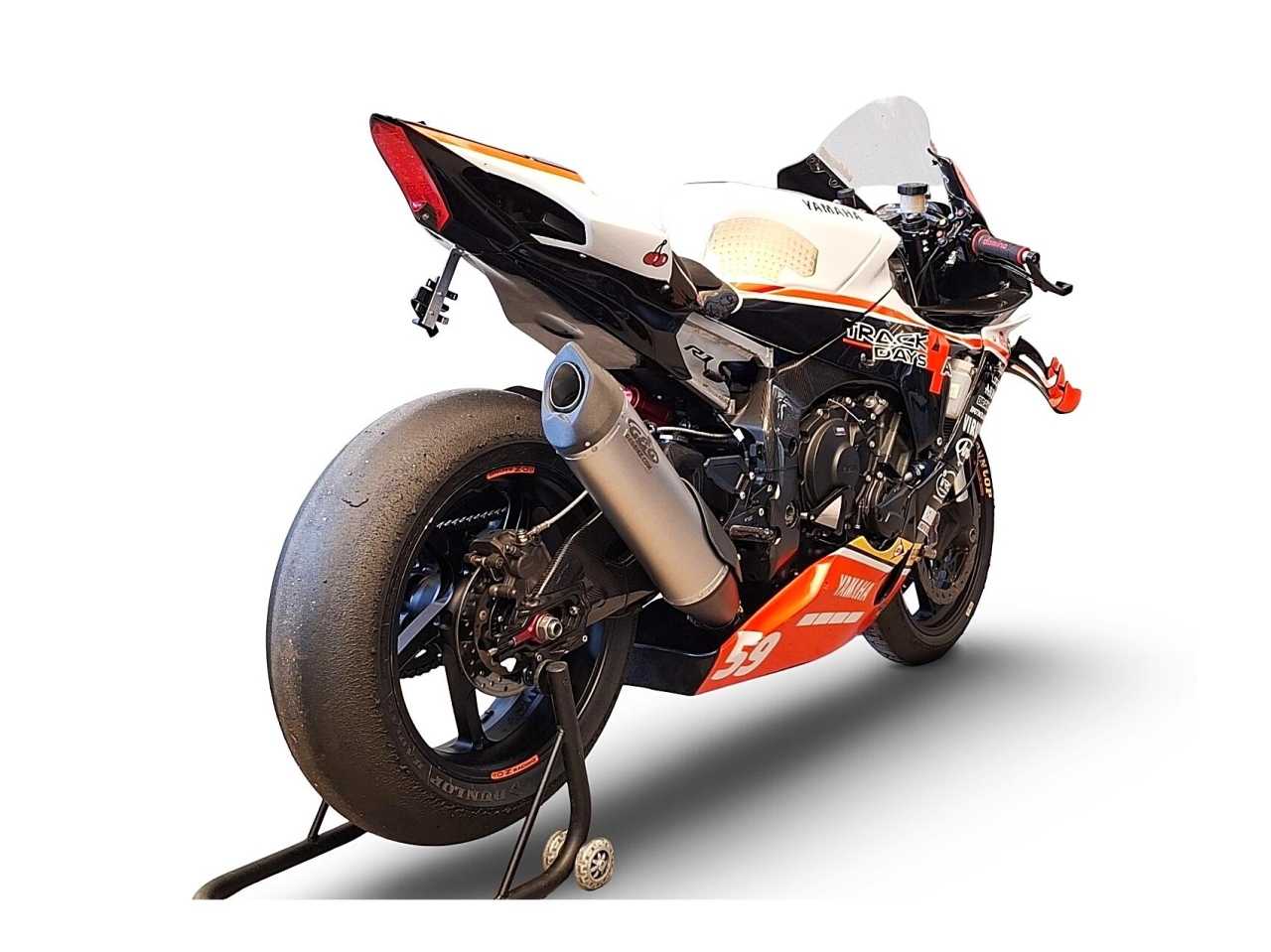 Track muffler with endcap in composite and interchangeable dB-killer for decibels level setting.