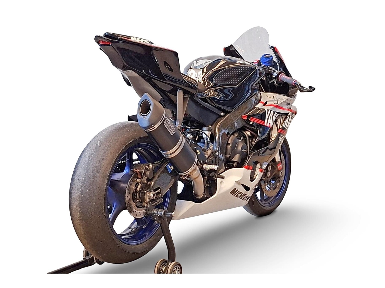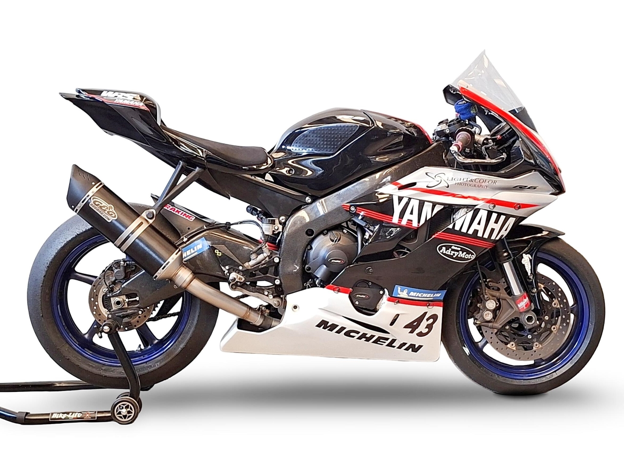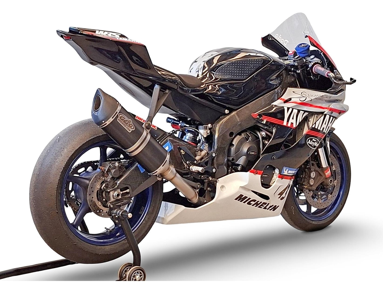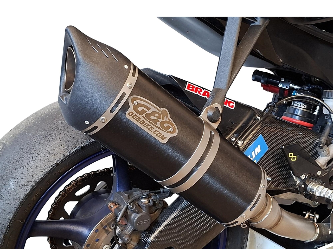 Track muffler with endcap in composite and interchangeable dB-killer for decibels level setting.